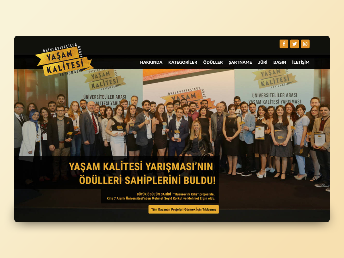 Yaşam Kalitesi Yarışması, ülkemizde yaşam kalitesi konusunda farkındalık yaratmak, düşünce ve çözüm üretimi sağlamak amacıyla gerçekleştirilen bir yarışmadır. Carbon İnteraktif bünyesinde, Yaşam Kalitesi Yarışması mikro sitesinin front-end ve back-end çalışmalarında görev aldım.